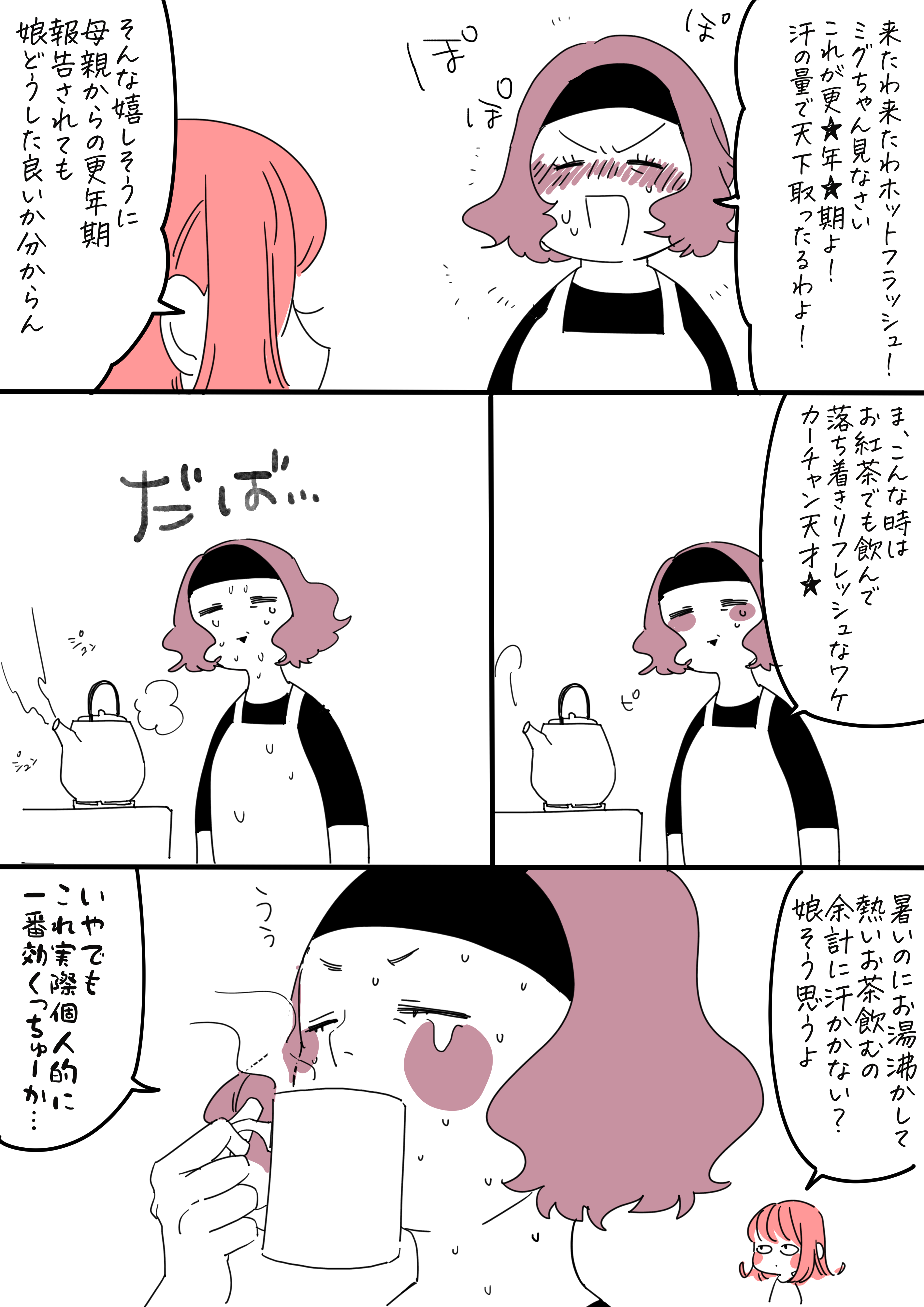 なんの前触れもなく、熱感が数分間持続し、発汗、脈拍が増加する症状です。このほてりなどの症状は、顔から始まり、頭や胸のあたりまで広がることもあります。